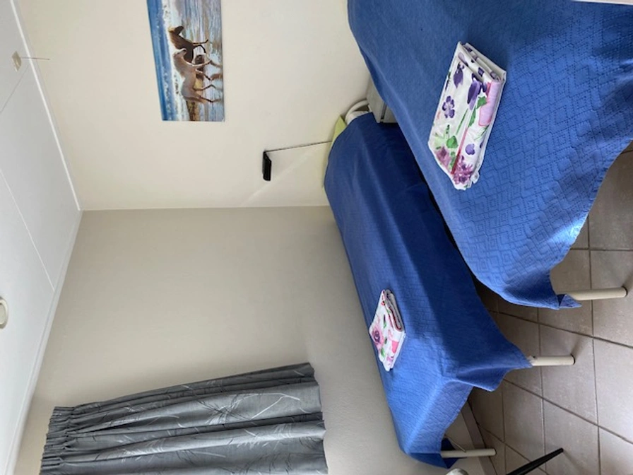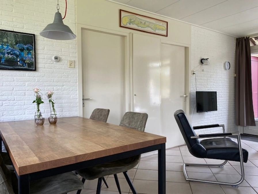 Bungalow Akelei borders the nature reserve "Landerumer Heide". The cozy center of Midsland with various island shops, restaurants and cafés is 1 kilometer away. The North Sea beach is located 1.5 kilometers to the north. The holiday home is quietly located with lots of privacy in the sheltered garden. The terrace faces south and is equipped with garden furniture and a picnic table. There is a swing and a sandbox for the children. You can charge your electric bicycles in the storage room and park your car on your own property. You are also allowed to bring your dog (max. 1). The living room has an area of 19m2 and there is a 3-seater sofa and a 2-seater sofa and a leather armchair and an LED TV (cable). There is an open kitchen with a refrigerator, separate freezer, dishwasher, combination microwave/oven and an electric citrus press. There are 6 chairs at the dining table. The house also has underfloor heating, a washing machine, tumble dryer and an iron and ironing board. There is a shower room with a towel radiator and the toilet is separate. The bedrooms are on the ground floor and all have a sink. There is also a wooden children's bed, a high chair, bath and a playpen in the house. 1. 1 x 2 person box spring bed 140x200. The surface is 11.50 m2. 2. 2 x 1 person bed 90x200. The surface is 7.75 m2. 3. 2 x 1 person box spring 80x200. The surface is 7.63 m2. There is a tiled floor and single duvets.