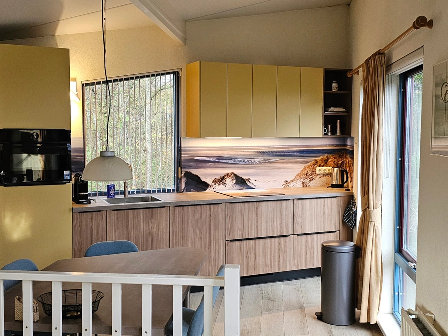 Beautiful comfortable split-level bungalow with a lovely garden and two terraces, located near the Landerumerheide, centrally located in a quiet area. The beach and the charming village of Midsland are 1.5 km away. The living room has a surface of 26m2 and has a laminate floor. There is a 2.5 and 1.5 seater corner sofa and 1 armchair. There are 4 chairs at the dining table. The kitchen is equipped with a fridge and freezer, dishwasher, combination microwave, mixer, toaster and citrus press. The bathroom has a walk-in shower, double sink and toilet. In the basement are the 2 bedrooms, one of which has a sink. 1. 1 x 2 person bed twin (2.20x1.80) and washbasin, (9.30 m2) 2. 2 x 1 person box spring (2.00x 0.90), (12m2) There are 4 x 1 person (down) duvets and the floor is linoleum. A high chair is available, if you are coming with a baby, bring your own folding bed or rent one on the island. You can also use the washing machine and dryer, iron/ironing board. On the terrace there is a table with garden chairs and garden cushions and there is a parasol. A mandatory final cleaning applies.
