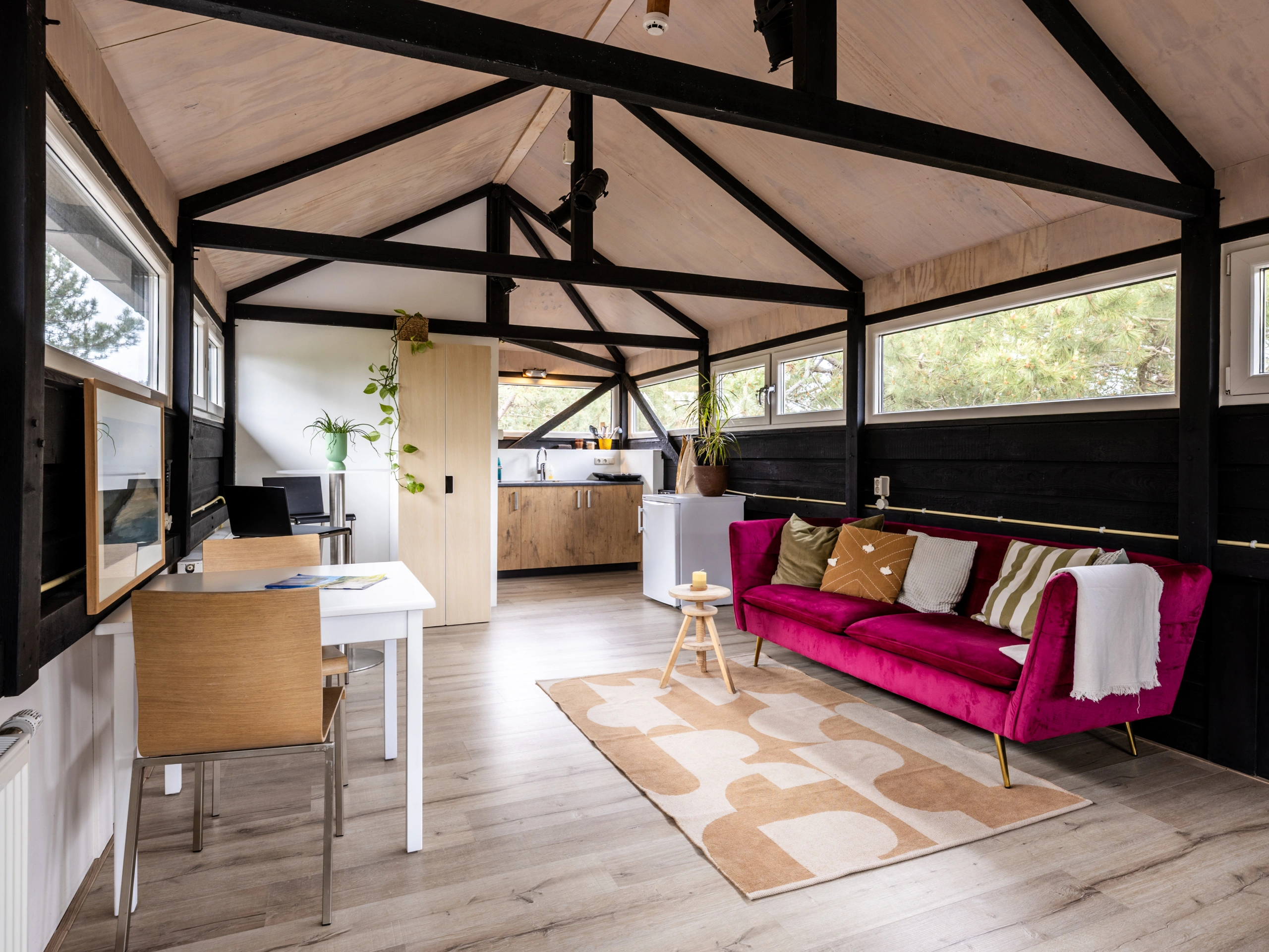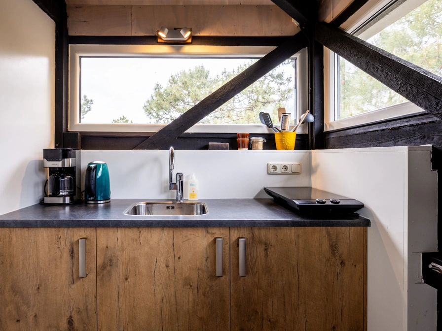 The studio is located on the top floor of the building 't Roefke. Here you can recharge in a wonderfully comfortable space with an almost 360 degree view of the Hoorn forest. The studio has a kitchenette, a modern bathroom (with a view while showering!) and a double bed. A nice and cozy place to completely relax with one or alone.