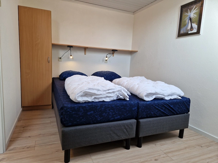 Quietly situated two-person apartment on the eastern side in a renovated farmhouse with four apartments. The owner lives in the front house. The apartment is quietly situated on the edge of the village of Midsland with a supermarket and restaurants within walking distance. The living room is 13.60 m2. (this is excluding the kitchen area), with tiled floor and underfloor heating, an upholstered 2-seater sofa and a leather-look armchair and dining area with two chairs. The kitchen is equipped with a 4-burner hob with extractor hood, refrigerator, coffee maker and kettle. On the 1st floor is a bedroom with 2 x 1 person box spring beds. (9m2) The bedroom has laminate flooring and the beds have 2 x 1 person synthetic duvets. The bathroom has a walk-in shower and a sink. The toilet is on the ground floor. The terrace with furniture is located on the east side. The farm is not located on a road, but there is passage of our own guests along the apartment.