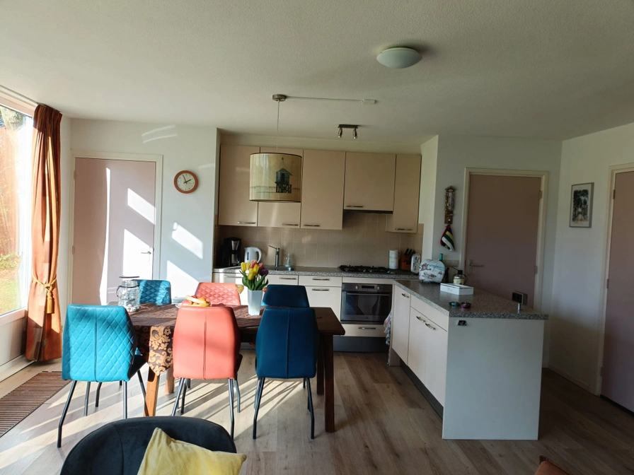 Charming house in Midsland Noord, close to the beach and on the edge of the dunes. Everything is on one level and there is a large garden with a sheltered terrace and outdoor fireplace. The terrace has garden furniture and a parasol. The house has a living room of approximately 40m2 (excluding kitchen) with a beautiful floor, a carpet, 2-seater sofa with a number of chairs and is equipped with central heating. There is a flat screen television. The dining area has a wooden dining table with 6 chairs. The kitchen is equipped with various conveniences such as a dishwasher, oven/microwave, refrigerator and coffee maker. There is a large amount of kitchen utensils. The bathroom has a shower with separate toilet and sink. There is a washing machine and dryer in the house. On the ground floor are also the three bedrooms with linoleum floors. 1. 2 x 1 person beds 90x 200 (8.80 m2) 2. 1 x 2 person bed twin 2x 80 x 200 (12.30 m2) 3. 1 x bunk bed 80 x 190 (5.75 m2) The beds have single synthetic duvets. All bedrooms have washbasins. A cot, chair and bath are available. A playpen can be rented. Dogs are not allowed in the accommodation. Young people under the age of 21 are allowed provided that their parents are also staying in the same accommodation.