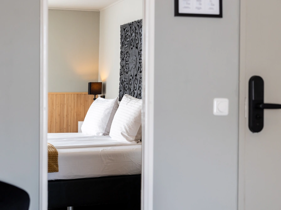 This room is located on the east side of the hotel. The double rooms are equipped with 2 single box-spring beds of 90x200cm. No ballroom in this room but equipped with all facilities such as a small sitting area, wardrobe, suitcase support, flat screen TV, refrigerator, coffee maker, kettle, coffee/tea facilities and crockery. Anti-allergenic floor. A table fan is available in the summer months. The bathroom has a shower, toilet and sink. Bath towels, toiletries and a hairdryer are available.