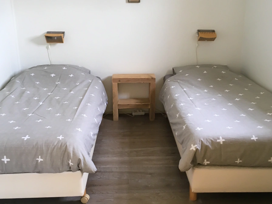 Quiet and rural apartment with unobstructed views over the meadows. Apartment Jan Pierewiet is a simple apartment at the rear of the detached barn. The garden and terrace are fenced. The living room of 27m2 has a tiled floor with central heating, 2-seater sofa, two armchairs and dining area with dining table and four chairs. The fully equipped kitchen has a 4-burner hob and extractor hood. There is a fridge with freezer, coffee maker, kettle and combination microwave. And of course there is Wi-Fi. There are two bedrooms on the ground floor. Bedroom 1 of almost 10 m2 with 2 x single beds (90x200) Bedroom 2 of approximately 12 m2 with 1 x double bed (180x200) Both bedrooms have a washbasin with hot and cold water. There is laminate flooring and there are single synthetic duvets. Also on the ground floor is the bathroom with shower and toilet. A cot with high chair and playpen can be placed on request. There are two terraces with garden furniture. A terrace on the east and a terrace on the west. It is possible to park the car on the yard.