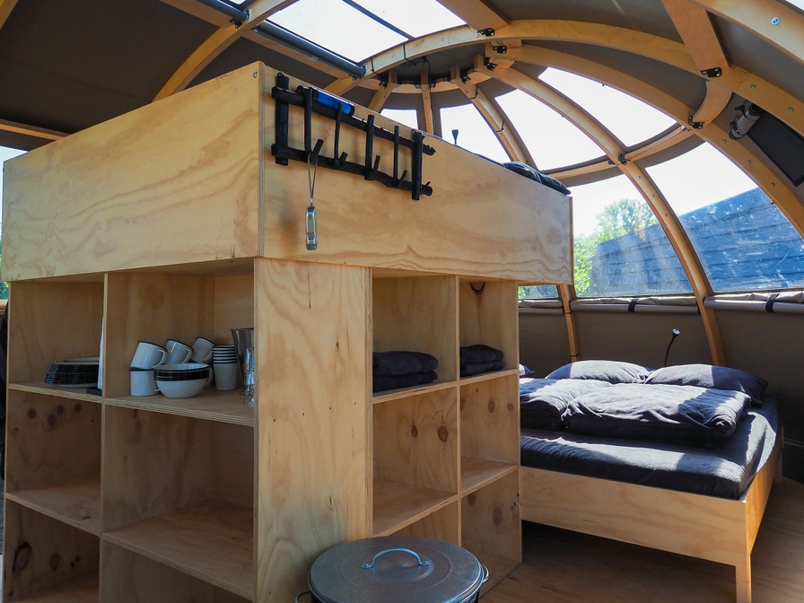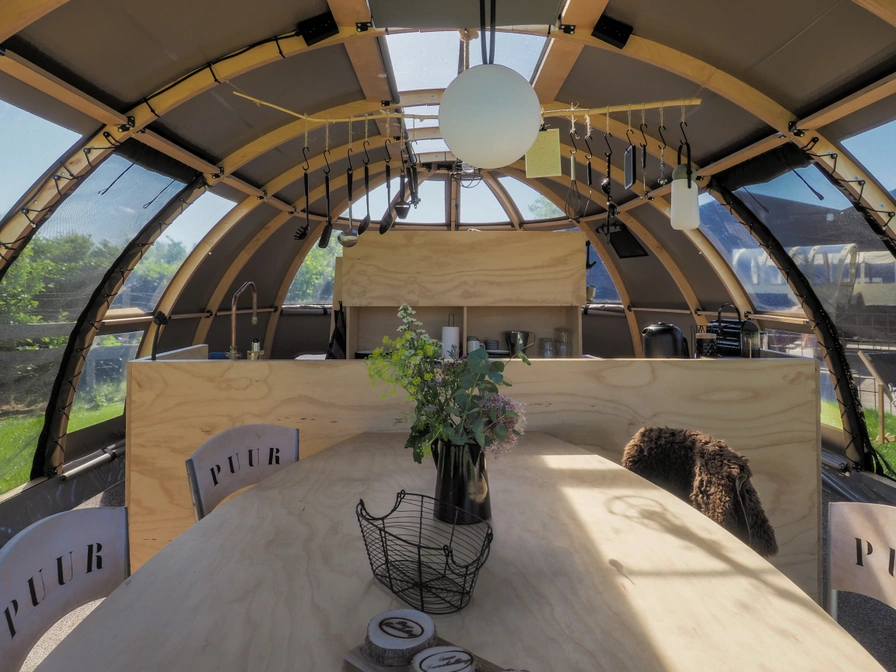 Purely sustainable, small-scale campsite against the dunes with 4 uniquely furnished 6-person dune tents. With a large family bed for 4 people and a 2 person semi-high bed. From the beds you can enjoy the starry sky for hours through the panoramic roof windows (which could be closed with curtains). The European nature reserve de Boschplaat, which has the predicate of the first Dark Sky park in the Netherlands, so that it is still really dark at night so that you will experience the peace and quiet and the light pollution is nil. Pure sleeping on the farmyard in a dune tent is pure enjoyment of the island farm life. The camping site is located in the backyard of Puur Terschelling against the dunes. And within walking distance of the Unesco World Heritage, the Wadden Sea and 1.5 km from the North Sea beach. With us you are very welcome to come and stay with the sheep, lambs, horses, foals, donkeys and 2 brown labradors Soof and Suus. The Pure animals have a great cuddly and cuddly factor. Pure design dune tent: - Power connection fused 20A per tent - Wi-Fi (free) - Fan - Fridge 142 liters (without freezer compartment) - Nespresso - Ketelbinkie 1.2 liter kettle - Tea thermos - Dopper thermos - Enamel 2 liter water jug - Cold running water - 4 burner induction hob - 6 person crockery, cutlery, pans, kitchen utensils, cups, mugs - Dining table inside with 6 chairs - Relief - Sockets for phone/laptop chargers - Ergonomic slatted base adjustable headboard = relax stargazing - Family bed 4 persons 280 x 200 meters or by means of sliding wall 2 x 2 persons 140 x 200 meters - Semi-high bed 2 persons 140 x 200 meters - Mattresses 140 x 200 meters 7 zone cold foam thickness 17 cm - Mattresses have a breathable waterproof cover = hygienic - Duvets 1 person 140 x 200 suitable for allergies - Bamboo pillows with a natural anti-allergic filling - Optidee bedding = cuddle softly and wake up rested - Mosquito net at the ventilation windows and doors - Laptop safe - 2 door awnings outside - Large picnic table outside - Fatboy 2 person hammock outside - Beach chair 2 person outside Pure children, to borrow (indicate in advance): - Deryan travel-cot cot including Deryan sleeping bag from birth to 4.5 years - Camping bed with blanket HxWxD 79 x 66 x 127 cm from birth to 15 kg - Growing child seat 5 heights incl. front bracket and 3-point safety belt from 6 months up to max. 15 kg