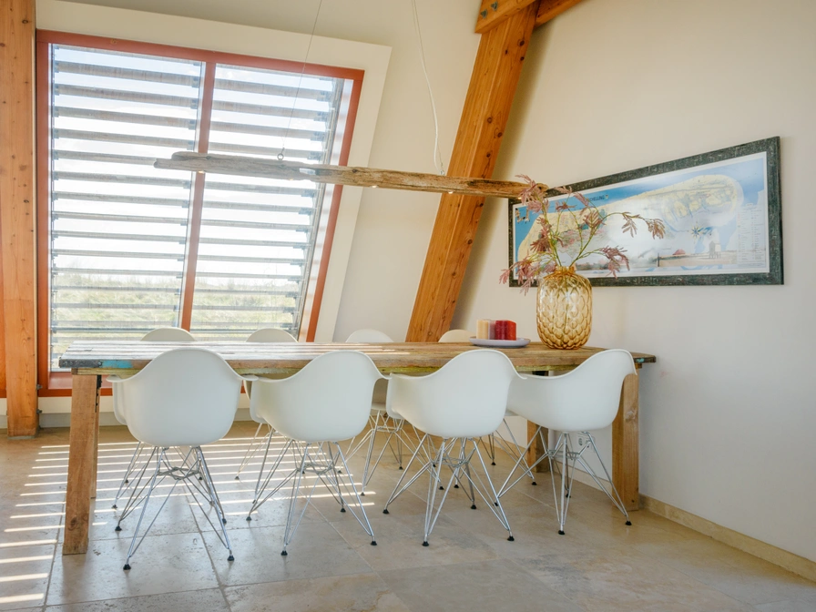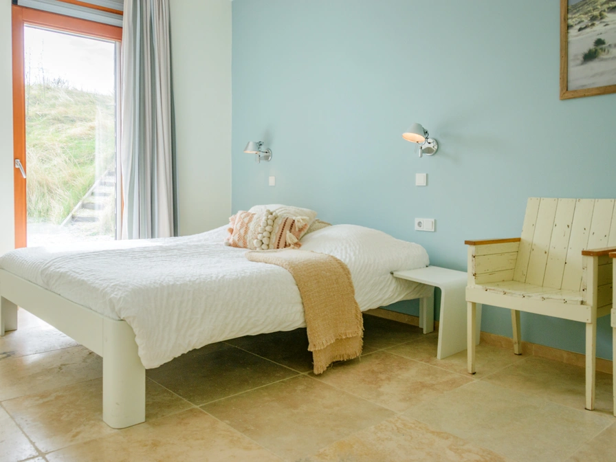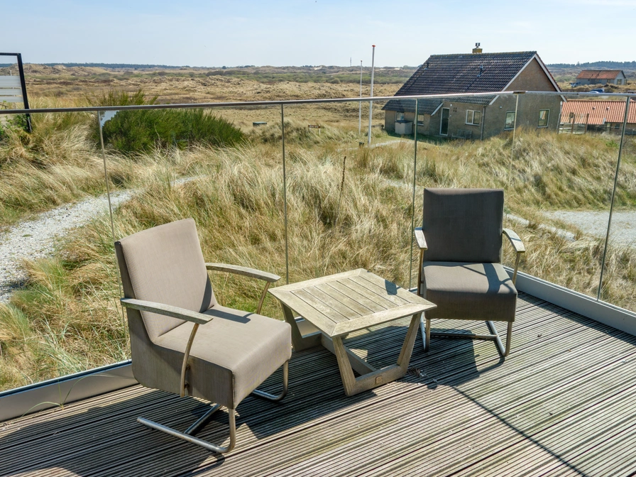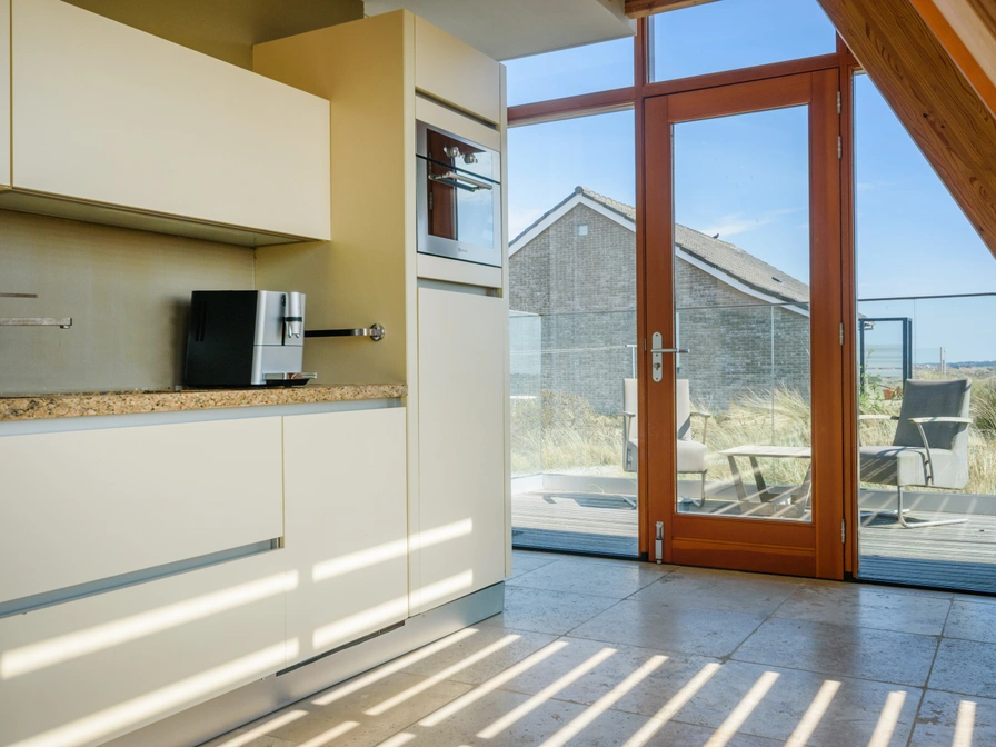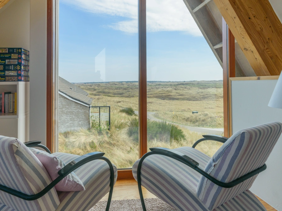 Holiday Home Inhout – Spacious and charming in the dunes near West aan Zee This very spacious holiday home Inhout is beautifully nestled in the dunes of West aan Zee, just 200 meters from the beach access to the North Sea. From the living room, you have a stunning 360-degree view of the dunes. Thanks to the high, open space, the interior feels light and airy. Enjoy the morning sun on the east-facing terrace or the sunset on the west-facing terrace. Layout & amenities: The holiday home has three floors and sleeps 8. Basement * Storage room with washing machine, dryer, and air fryer. * Underfloor heating and automatic lighting. * Three bedrooms. From the bedroom, you have access to the shell terrace. These doors are equipped with insect screens. 1. Double bed (160x200) 2. Two single beds (90x200) 3. Double bed (180x210) Bathroom with walk-in rain shower, heated towel rail, and sink. Separate toilet. Ground floor Living room (36 m²): natural stone floor with underfloor heating, corner sofa, two armchairs, wood-burning stove (firewood provided), large dining table, smart TV, and Sonos. Kitchen: fully equipped with a 4-burner gas cooktop, extractor hood, kettle, combination microwave, espresso machine, and refrigerator with freezer compartment. Patio doors leading to the east- and west-facing terraces. Bedroom 4: Double bed (180x200) with en-suite bathroom (walk-in shower, sink). Separate toilet. Mezzanine * Workspace or relaxation area with a view of the dunes. * Opportunity for reading, gaming, or working. * PlayStation available for shared use. Extras * Utility room with washing machine and dryer. * Cot, high chair, and hanging chair available. * Children's tandem bike (1 adult + 1 child) in the storage room. * Parking for 2 cars.