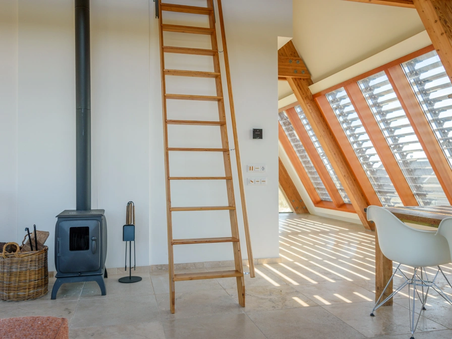 Inhout is a modern, bright dune villa, beautifully situated in the dunes of West aan Zee with expansive views in all directions, within walking distance of the North Sea. It accommodates 6-8 people and features four bedrooms, two bathrooms, and two separate toilets. The mezzanine level offers a workspace, a comfortable spot for reading, or simply enjoying the dune views. The beach access is just 200 meters away.
